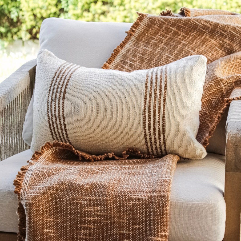 Cojín Crudo con Líneas Arena 50x30 - 100% Algodón - Con relleno y cierre