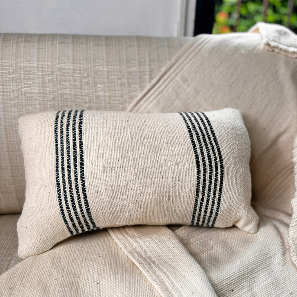 Cojín Crudo con Líneas Negras 50x30 - 100% Algodón - Con relleno y cierre