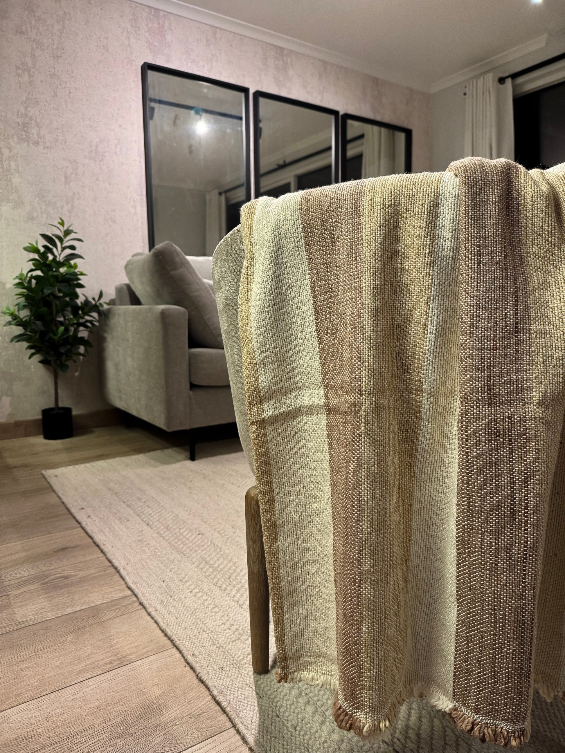 Manta 100% Algodón - Crudo con Franjas Tierra Pasteles