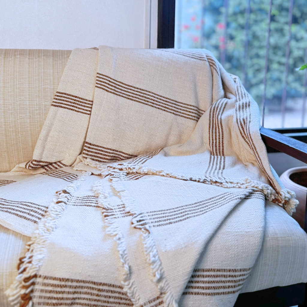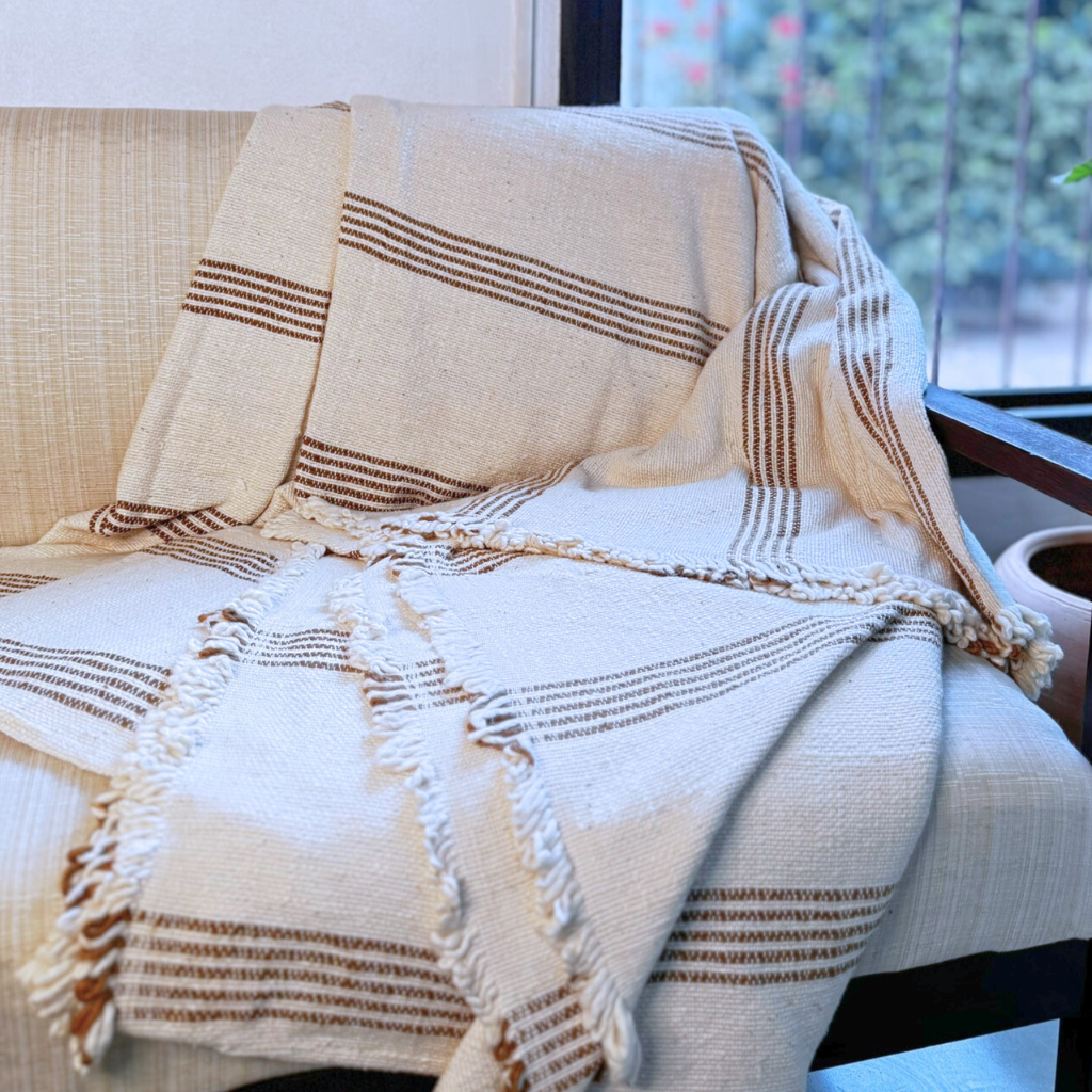 Manta Crudo con Líneas Arena - 100% Algodón - 250x240 cm